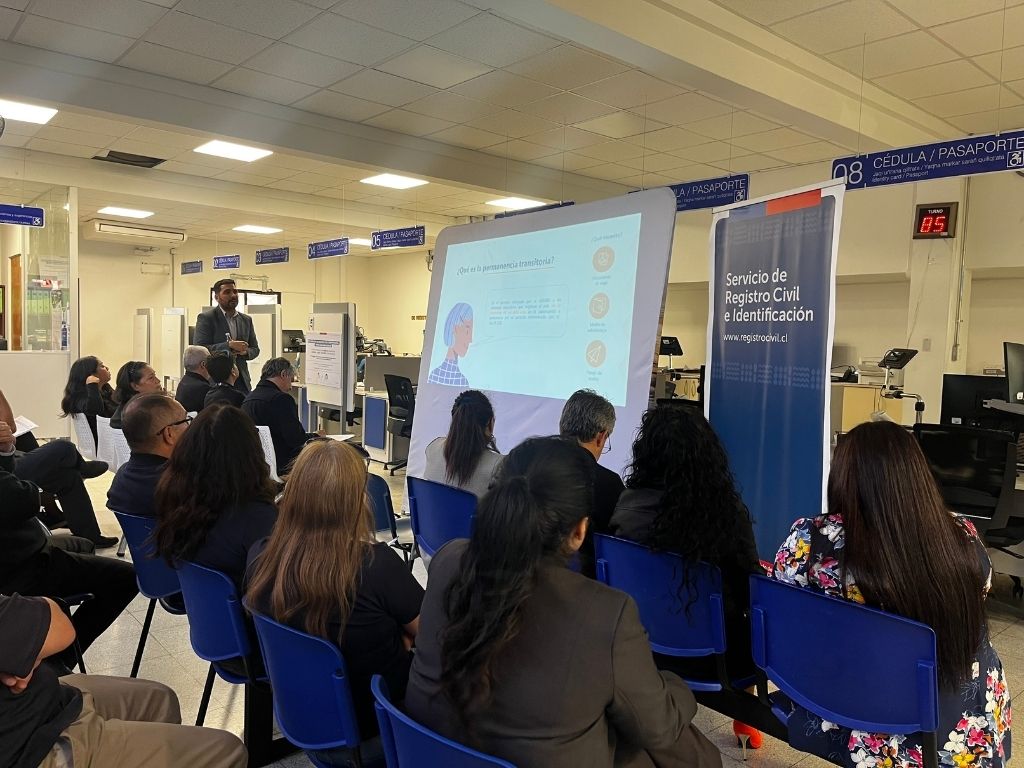 La instancia se realizó en el hall principal de la oficina del Registro Civil de Antofagasta, y reafirmó el compromiso conjunto de ambas instituciones con la atención inclusiva y la regularización migratoria en la región.